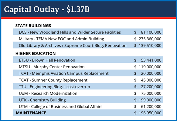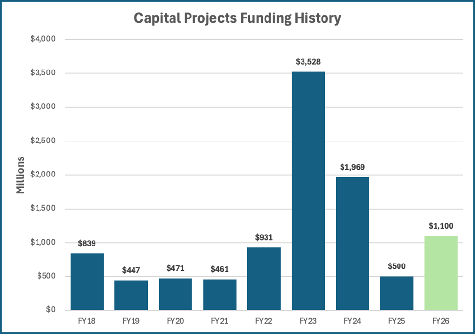 Legislators passed a $59.8 billion budget that included just over $1 billion in bonds dedicated to capital projects to add to the $135 million in the state appropriations. For information related to specific funded projects, please refer to the state architect’s website. The annual list for this year does not show the final action of the legislature, but should be updated soon.