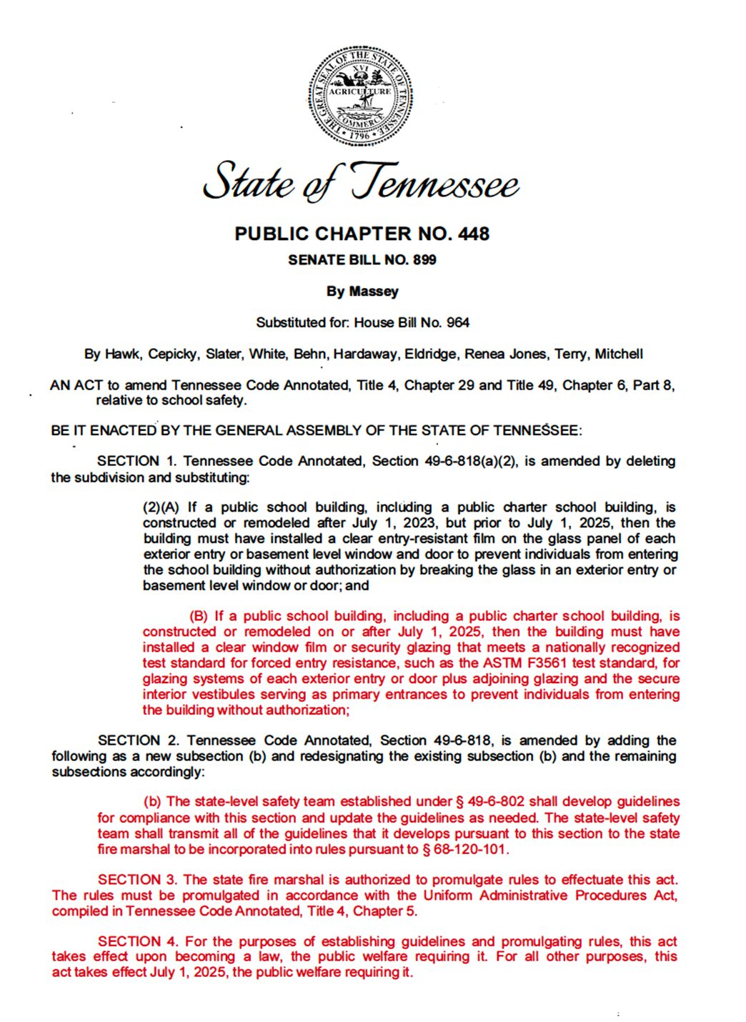 School Safety Glass Standards & Guidelines | SB899 (Massey) | HB964 (Hawk) | AIA Sponsored Legislation