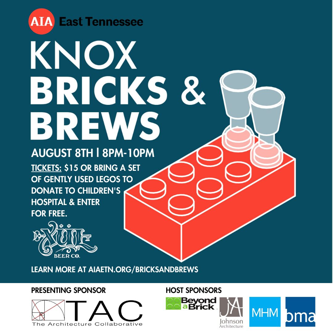 Tickets are $15, including two delicious drinks from XUL Beer Company (non-alcoholic drinks are available) and the chance to play with Legos! All proceeds will support AIA East Tennessee’s mission and programming.