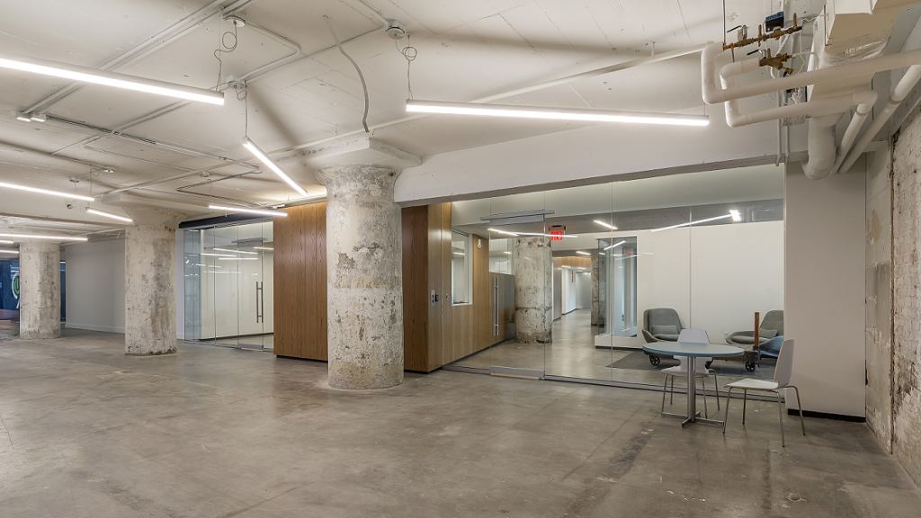 Interior architecture: Two Memphis philanthropic foundations teamed up to share new office spaces within a recently renovated Sears distribution facility, previously vacant for 20 years. Each tenant space is primarily made up of private office and meeting rooms.