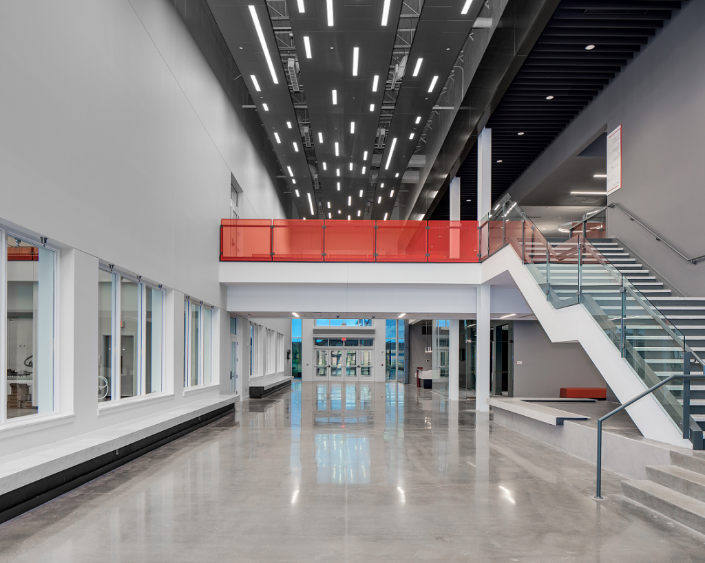 Each entity provided a separate program of spaces required to support their needs, and much effort was spent identifying efficiencies and synergies between varying programmatic functions. The resulting building is comprised of both classroom and lab type spaces where students and trainees are able to learn, through conceptual instruction as well as hands-on training, the latest practices related to manufacturing and automotive trades.The building’s layout and infrastructure configuration required careful consideration, and was designed to support and anticipate future industry innovation.