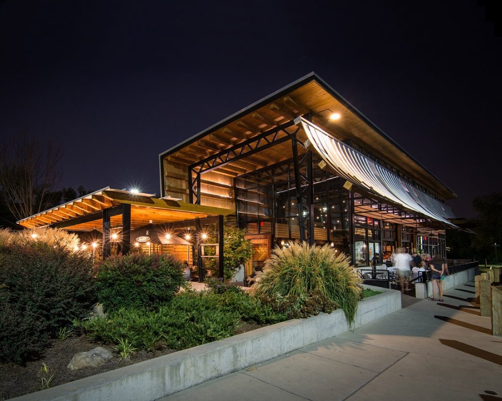 The clients desired a solution that would serve two purposes: providing an amenity for guests of their neighboring hostel, which attracts outdoor enthusiasts; and attracting locals by offering what feels like a communal gathering place. The clients wanted the space to embrace the outdoors and feel inviting to guests fresh off the trails. The resulting design features comfortable outdoor areas, including a cozy, landscaped patio, a “cedar room” space with a table for larger groups and an indoor/outdoor bar that allows patrons to experience great service and the charms of the outdoors from either side of the bar. The ambience and tone of the space is equally conducive to a big night out on the town or a quick beer after a day in the woods.