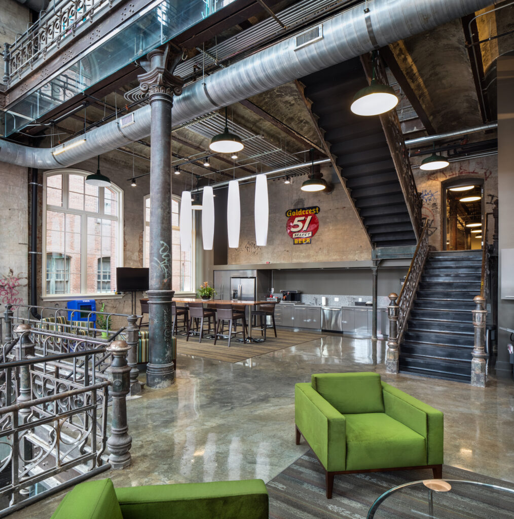 Jurors felt the design offered a nice very precise insertion into existing spaces that flowed into a cohesive spectrum between old and new. Saw harmony to the elements and rawness of space, graffiti, wrought iron, furniture selections and views across the atrium.