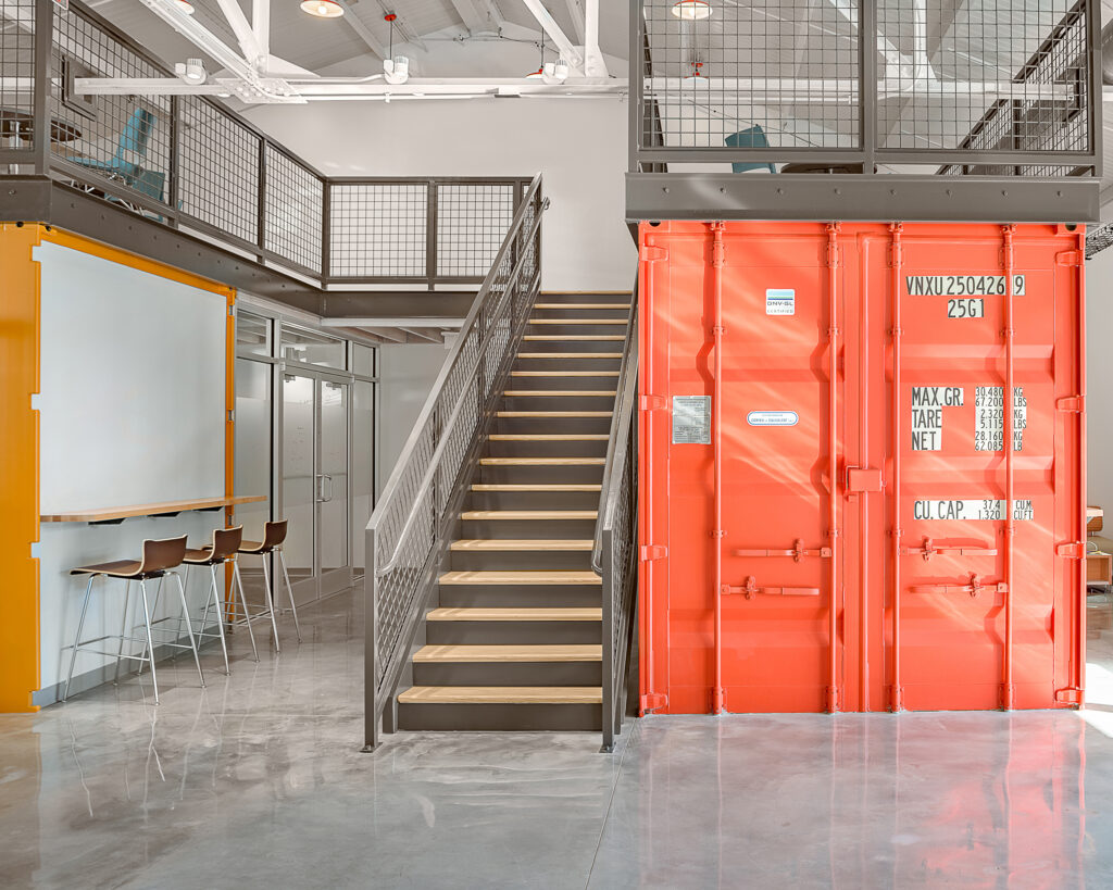 Jurors liked the use of shipping containers inserted into the converted steel structure of the warehouse shell with containers creating new spaces within the overall volume. Clean and clear design approach with colors that add fun and interest; the structure brings a nice play of light.