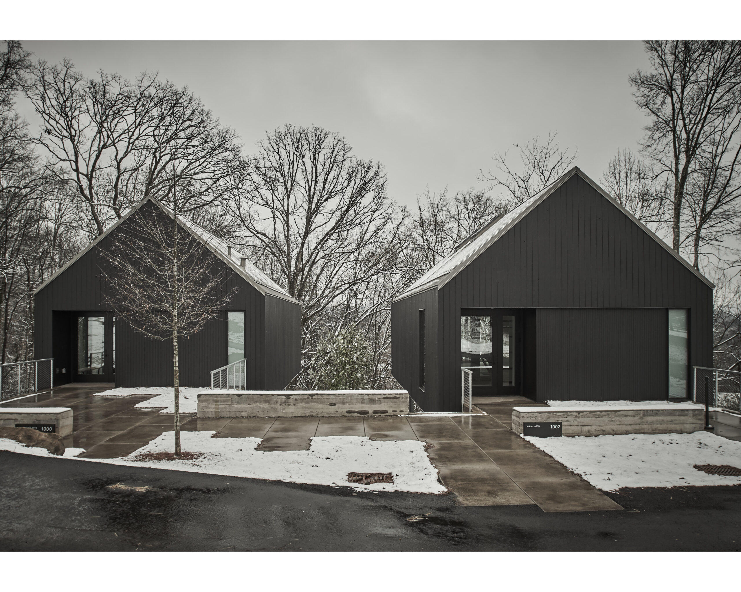 Jury Comments: Enjoy the siting, the tree preservation and proximity to tree canopies that elevating the structures affords, and the effect on interior experience of the surrounding landscape. In the context of other projects on this site, the jury imagines that the designers really had to “stand up” for this approach. The jury appreciates the reductive palette and restrained detailing, especially the eave details that allow a monolithic formal appearance without resorting to turning down the roof to wall, for example. The contrasting potential of public terraces and interior solitude the site concept offers is appreciated in the context of the program. The minimal expression of interior details and systems enhances an atmosphere of detachment and immersion.